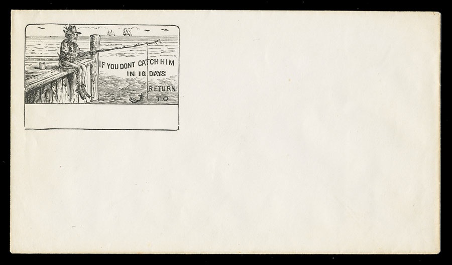 " IF YOU DON'T CATCH HIM " corner card on unused envelope, showing a man fishing