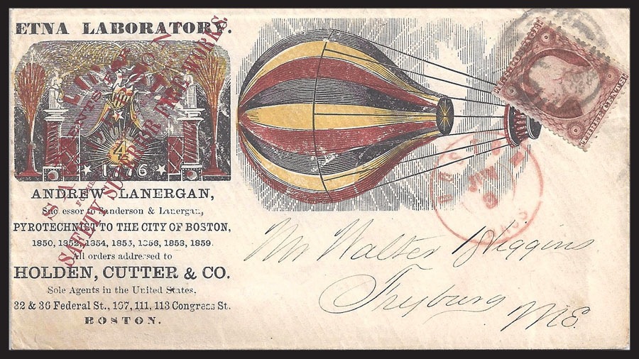 Advertising cover mailed with an 1857 3¢ stamp ( offered for sale on eBay by Richard Frajola, July 2013 )