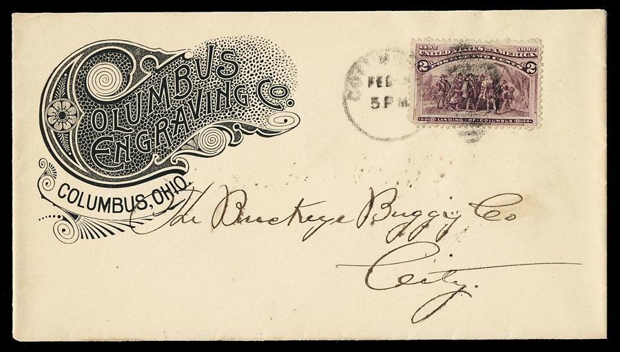 Advertising cover: Columbus Engraving in Columbus, Ohio with a Columbus stamp.
