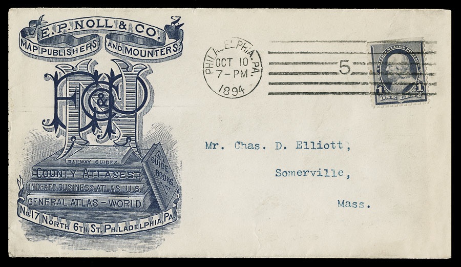 Advertising cover for publisher of maps and atlases, 1894