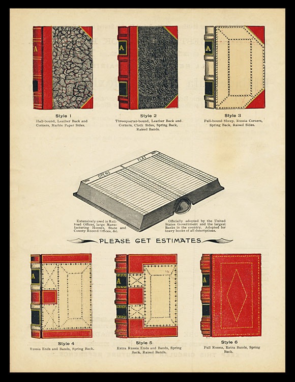 Circular from a New York maker of blank book journals that would lie flat, having the "Philadelphia Patent Flexible Back".