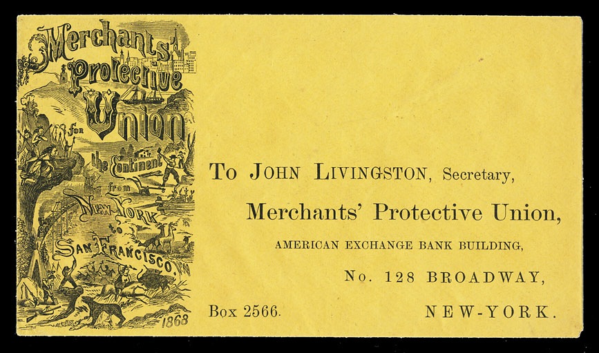 Advertising return cover, unused. "For the Continent from New York to San Francisco, 1868"