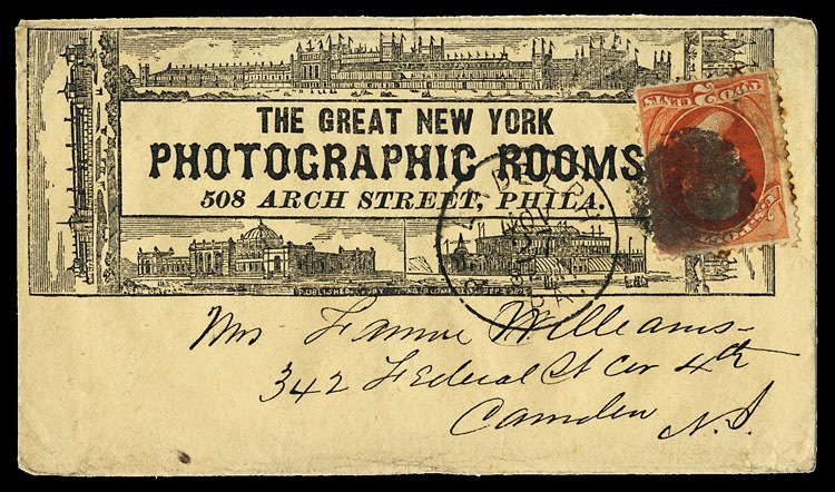 Advertising cover for a Philadelphia photographer, 1875. Illustrated with Centennial Exposition buildings.