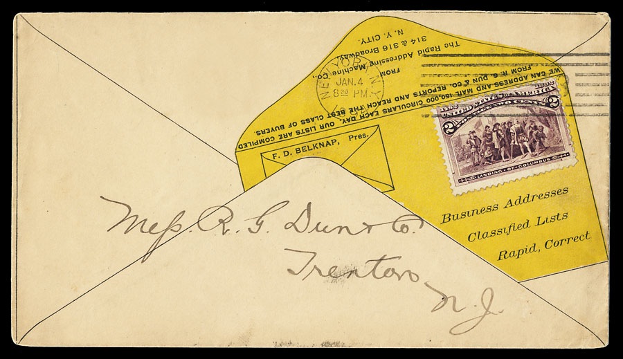 Advertising cover. A tromp l'oeil, with stamp on envelope on envelope, for a firm which addressed envelopes for mass mailings by machine.