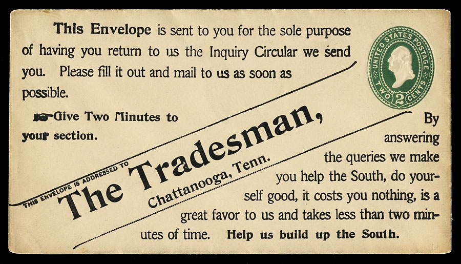 Advertising return cover, unused. "Help us build up the South."