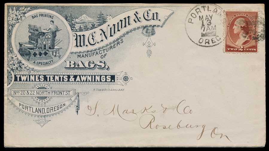 Advertising cover, 1886, for a Portland, Oregon manufacturer of bags, twines, tents and awnings