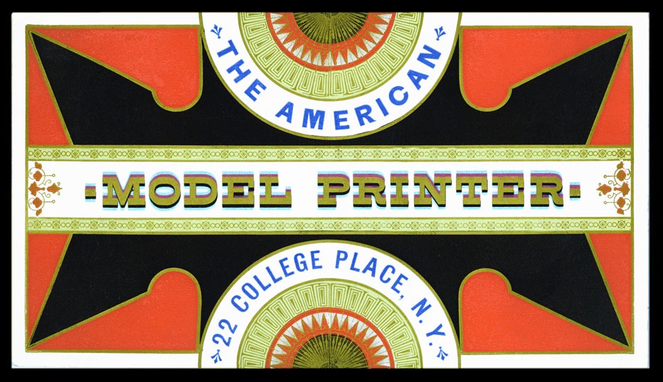 Trade card. I believe this was conceived as an abstract representation of paper through a rotary press.