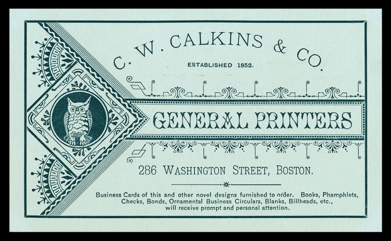 Trade card ("pamphlets" is mis-spelled as "phamphlets")