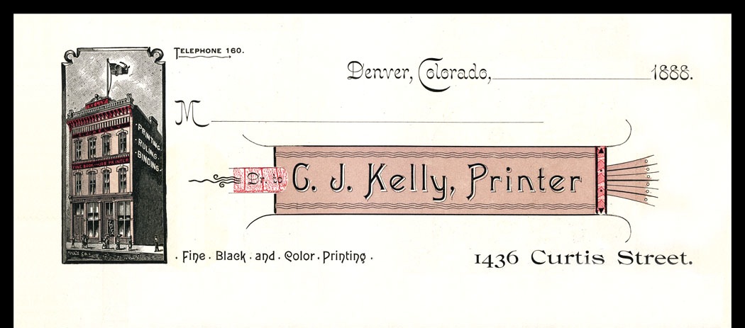 Letterhead specimen by C. J. Kelly of Denver, 1888. (Collection of Joe Freedman)