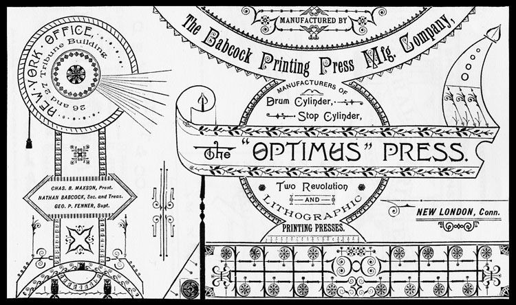 Specimen submitted to The Inland Printer, Vol. III, No. 10, July 1886. A bit over the top.