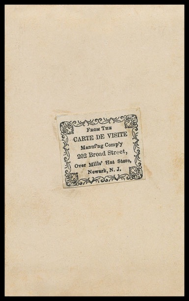 Paper label for a Newark, NJ photographer, "Over Mills' Hat Store"