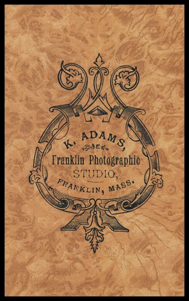 Black ink printing on a stock woodgrained pattern card