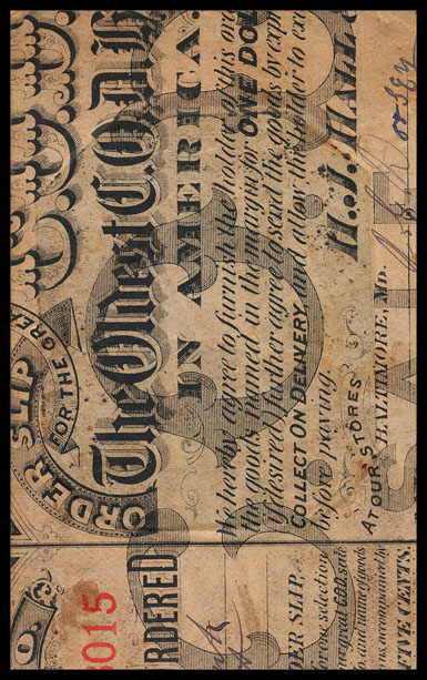 Piece of a C.O.D. order slip, H.J. Hall & Company, glued to hold tintype in place