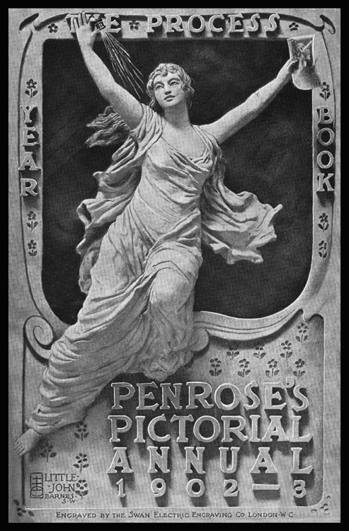 Cover image, Penrose's Pictorial Annual, 1902-3. This issue has several examples of designs modelled in clay, photographed, then reproduced in halftone.
