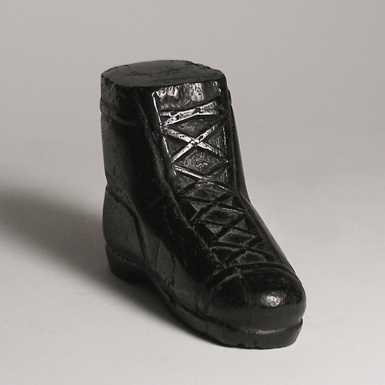 Shoe, carved of anthracite coal.