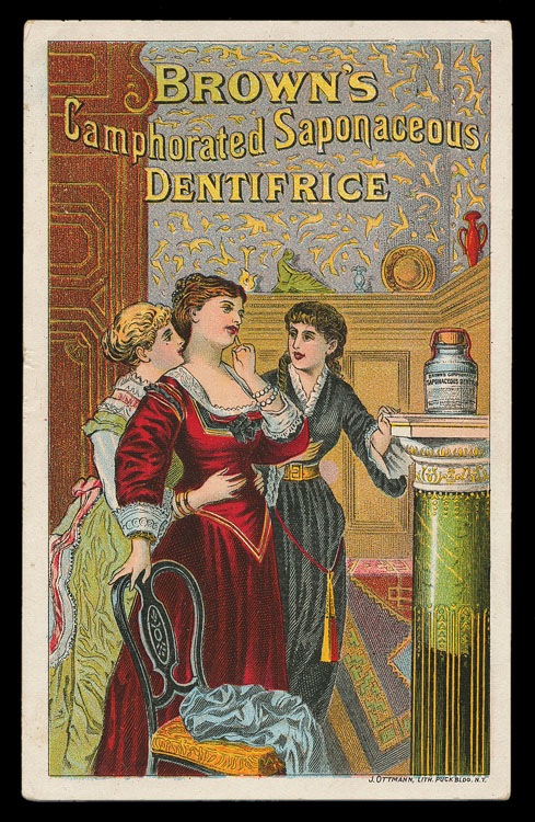 Trade card. This one includes either some chromolithography, or some chromolithograhy-like patterns done on stereotypes.