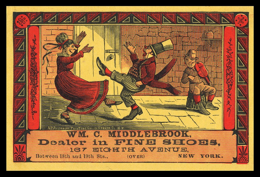 Stock trade card, imprinted for a shoe store. New York Pictorial Printing Company.
