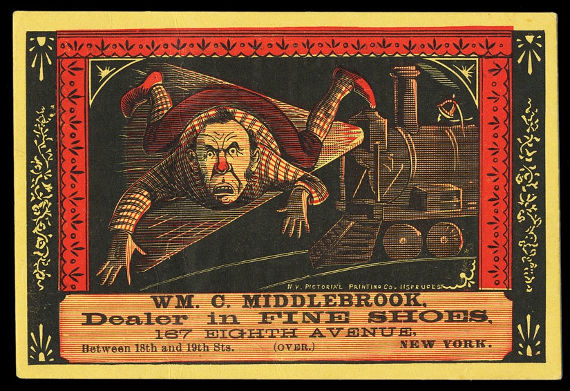 Stock trade card, imprinted for a shoe store. New York Pictorial Printing Company.