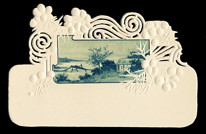 Diecut and embossed stock calling card with scene, unused