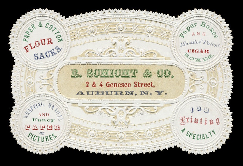 Trade card, diecut and embossed