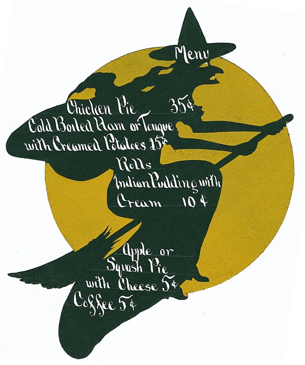 Handmade Halloween menu. This one is not a machine-made diecut; rather, it is a hand-done cut-out.
