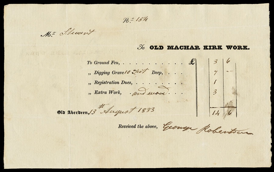 1833 gravedigger's receipt, for digging a grave ten feet deep.