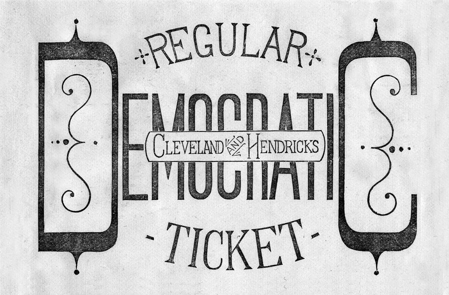 Massachusetts Democratic Party ticket header featuring Cleveland and Henricks, 1884