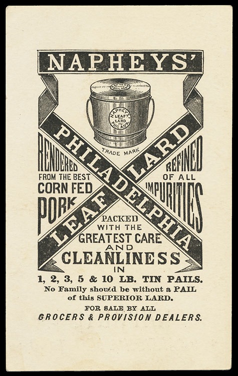 Trade card, back of chromolithographed stock card