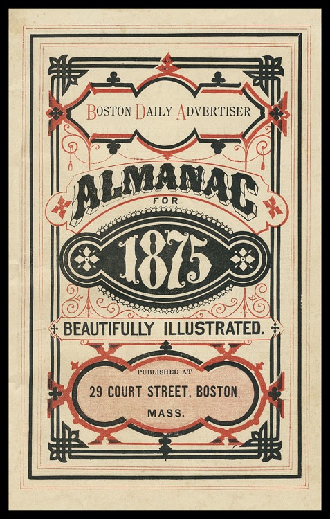 Almanac cover, 1875. This printer got a lot of complexity and implied richness out of two just colors.
