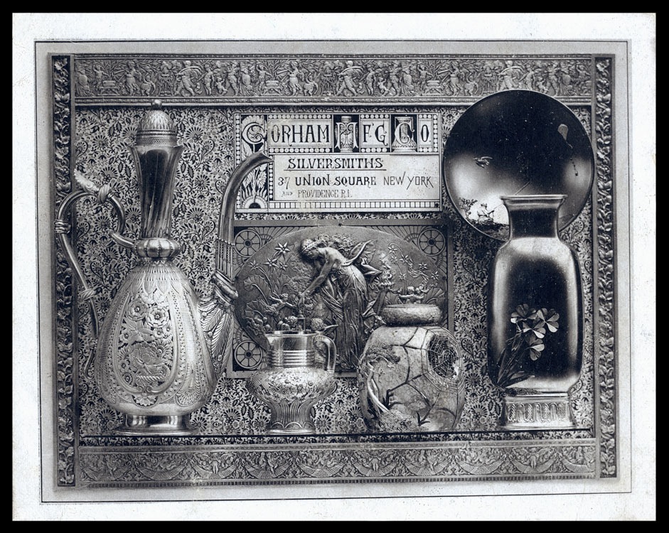 The card is an actual photographic print of a set-up arrangement of objects, sign, background, etc.