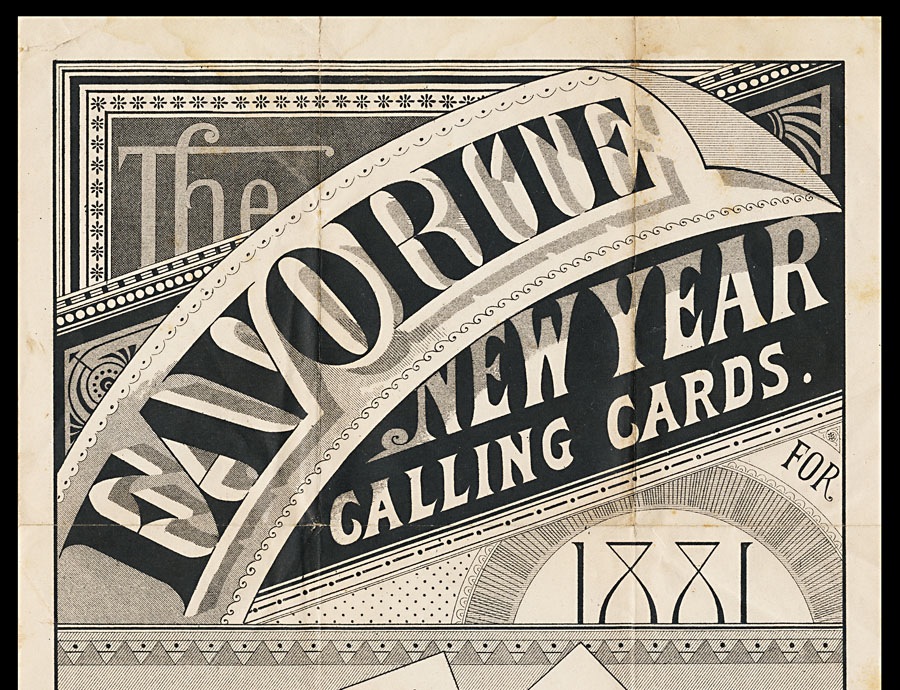 This is the top portion of a 22" tall broadside poster for this Philadelphia "Printers' Supplies Depot", showing their line of ten New Year calling cards for 1881,
