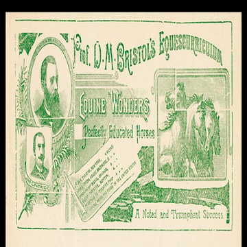 Letterhead, undated, for a traveling equine show. One can clearly see where the independently enraved wood blocks were butted together to make the whole.