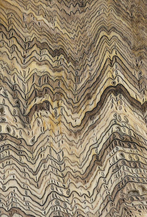 had dry rot and was compressed before petrification, creating its characteristic herringbone pattern.