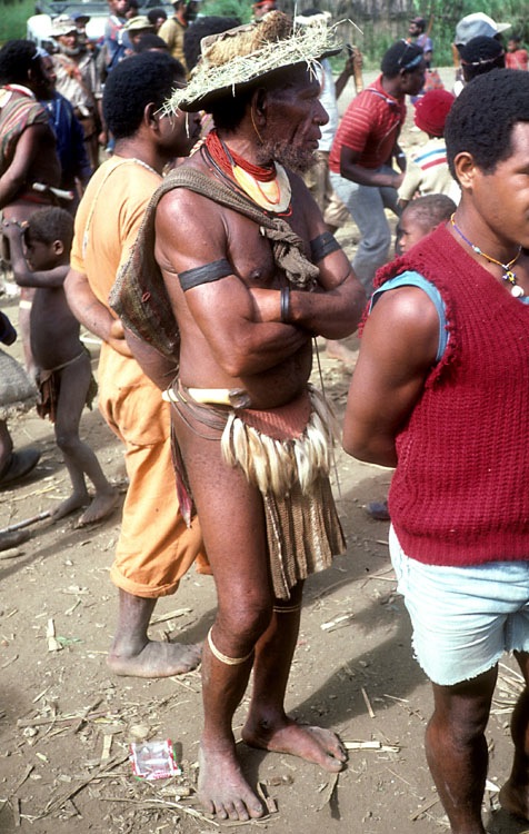 Huli men dress both traditionally and in western hand-me-downs