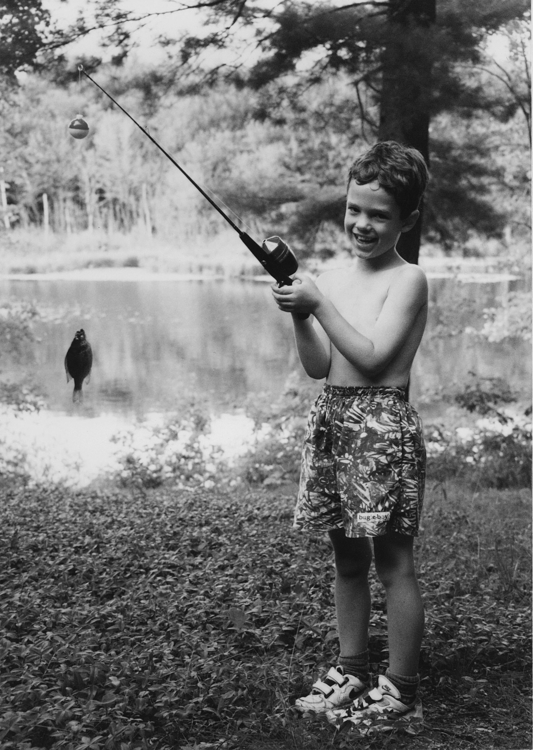 My son Dana Sheaff, Ellis Pond, Norwood, Maassachusetts, ca1995. First fish. Photograph by Dick Sheaff.