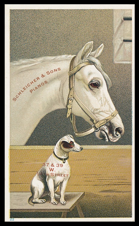 A nineteenth century "stock" chromolithographed trade card, made available to any company wishing to buy it and overprint with company information.