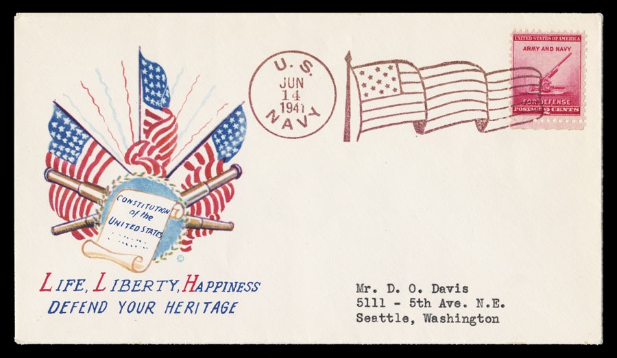 Patriotic cover, 1941, with a great waving flag cancellation
