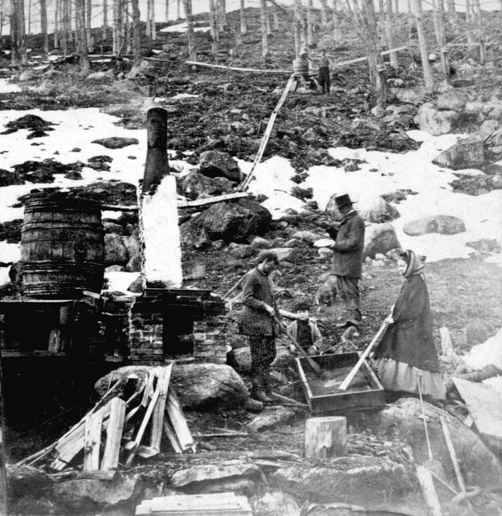 Maple sugaring the old-fashioned way (stereo pair)