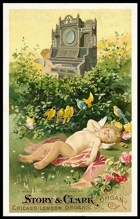 Trade card, chromolithography. Although not engraved, this card is an example of a similar soft, watercolor-like style found in some color cards of the period.