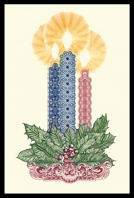 Engraved Christmas card, incorporating geometic lathework and other engraved elements, Banknote Corporation of America, ca. 1990