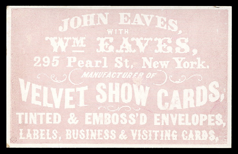 Trade card. John Eaves was the son of William Eaves; there are a very small number of cameo cards signed Eaves & Son ( Collection of José Rodriguez )