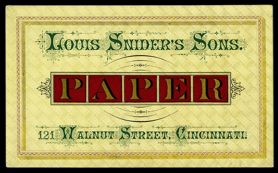 Trade card, printed on cardstock patterned on both sides (Collection of Joe Freedman)