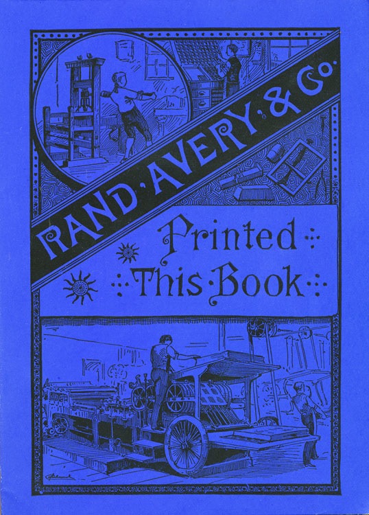 Advertising insert on heavy stock, in King's Dictionary of Boston, by Edwin M. Bacon, 1883. Printed by Rand, Avery & Company / Franklin Press.