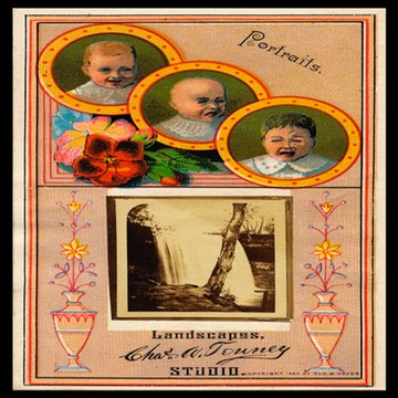Photographer Charles A. Tenney of Winona, Minnesota advertised a wide range of photographic services on the back of the card, but featured a small