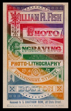 Trade card with unusual multi-color split-fountain printing ( not in Sheaff collection )
