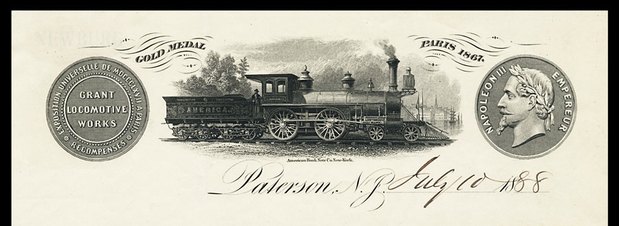 Billhead, engraved by American Bank Note, 1888