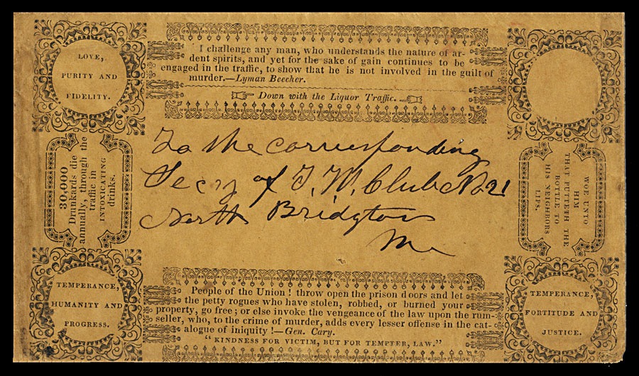 A rare Maine Temperance Movement propaganda cover, by Portland, Maine printer Thurston & Company.