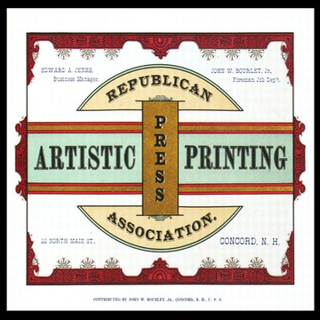 Trade card design, Printers International Specimen Exchange, Vol.III, 1882 "Contributed by John W. Bourlet, Jr., Concord, NH" ( not in RDS collection )