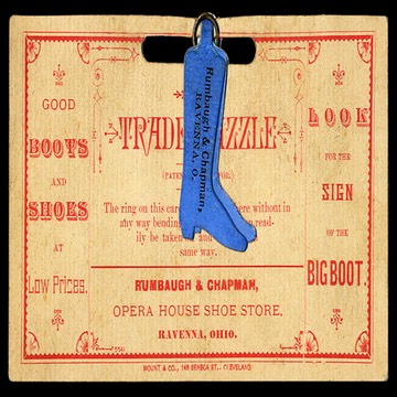 Puzzle trade card, with diecut boots, printed by Mount & Company
