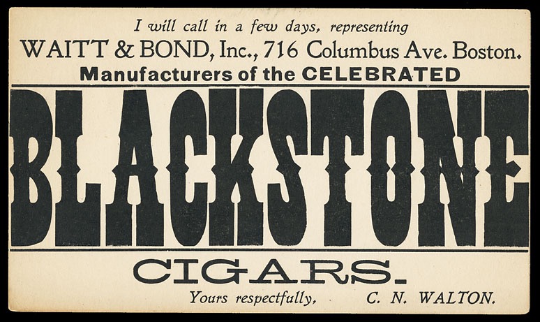 Salesman's "Will Call" card, on a government postal card